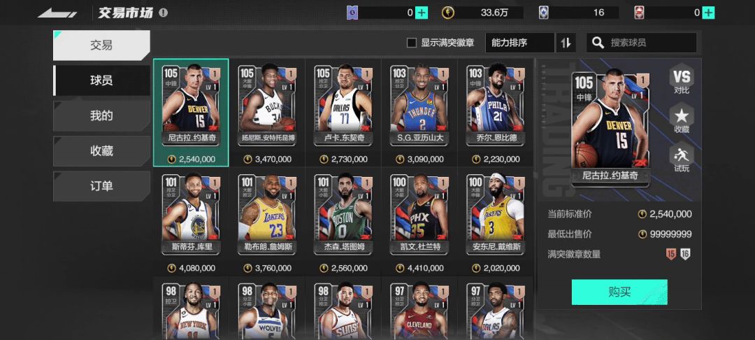 本次测试中,官方对交易行进行一大波优化,优化了前测中的球员对比功能。兄弟们只需要点击球员旁边的“VS”就能将该球员和其他任意球员进行全面的对比了。