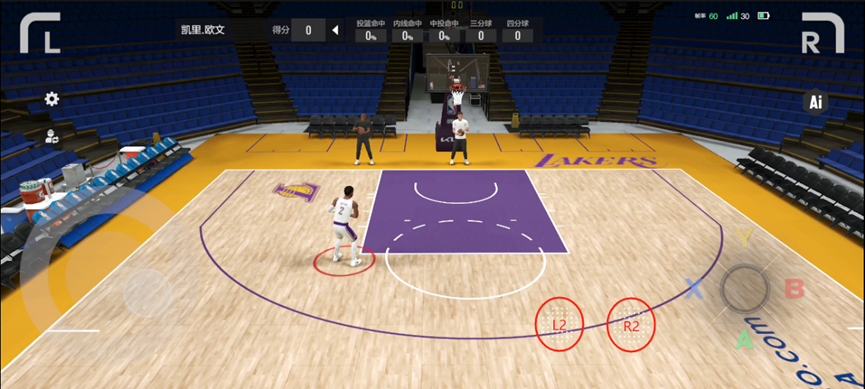 但本次测试时,L2和R2这两个按键被单拉出来放到了右摇杆的旁边,基本可以说和手柄的操作已经大差不差了,相信习惯手柄的兄弟们可以快速上手。篮下卡位时只需要按住右上角的R,就能实现轻松卡位。