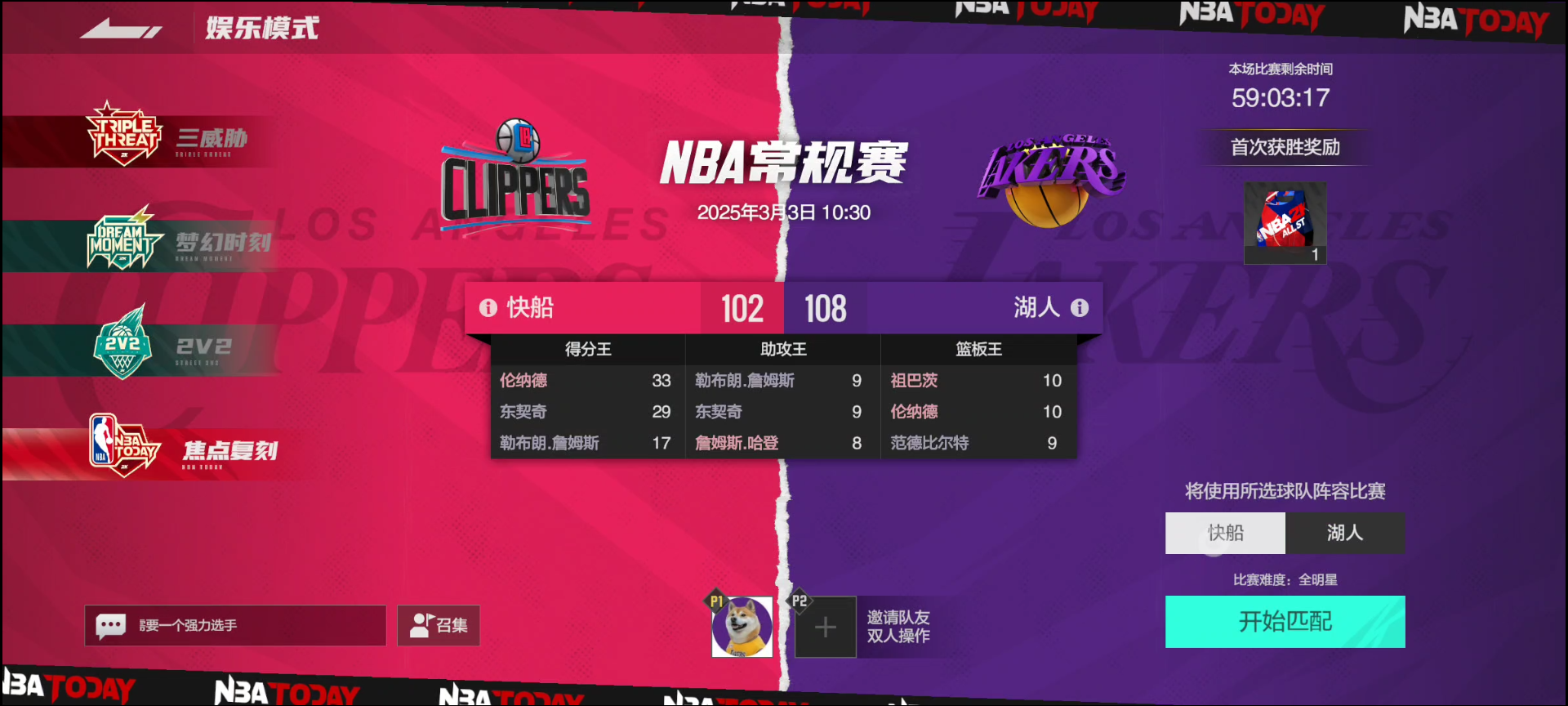 本次测试在前测的基础上,又增加了3个娱乐模式,分别是【焦点复刻】,【决战美职篮】和【巨星征途】。D弟在这里给兄弟们简单介绍一下每个模式的特色。