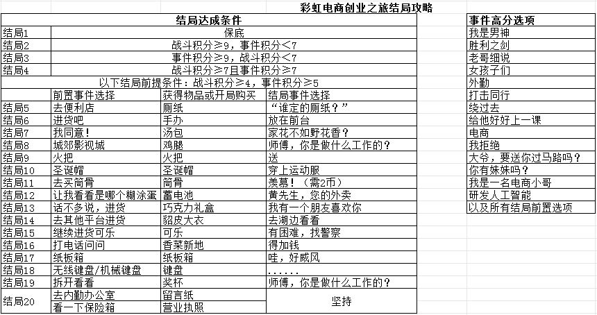 3.彩虹电商创业之旅,200体力可以出,结局20容易刷。