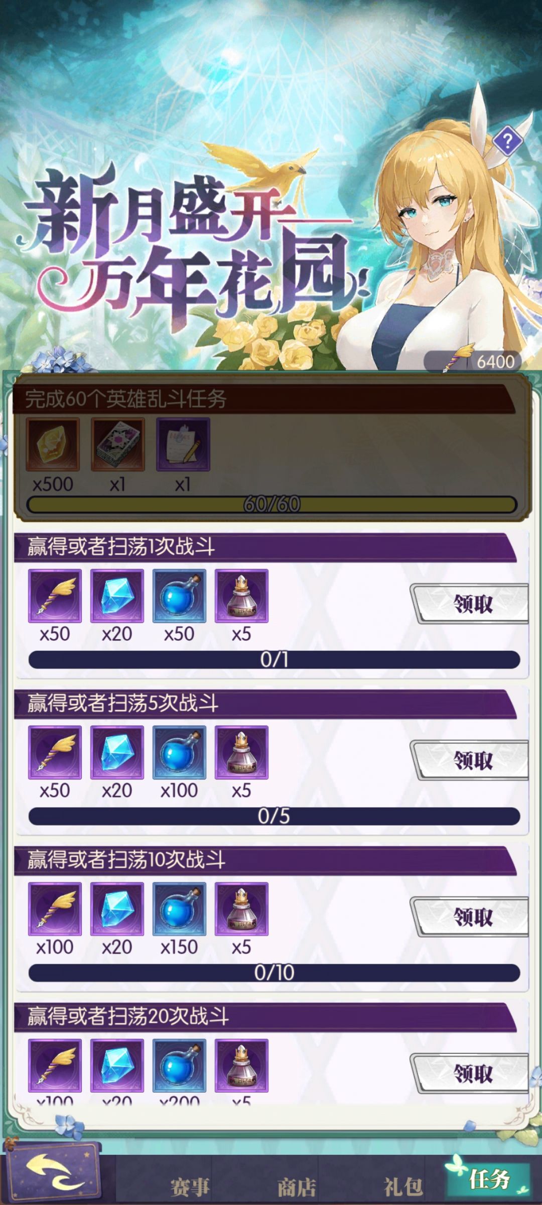 指令主要靠每日领免费礼包做任务。目前我只开一个,应该是类似,后续在补充。不氪金的话有两个方案,10天花100体力,或者9天花150体力,自行决定。氪30可以提前两天出来。这个玩法没有英雄参战任务。攒体力的好地方,没啥好说的,就自动挂机,然后升级圣树。