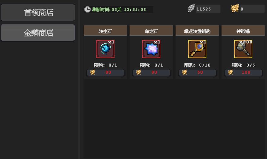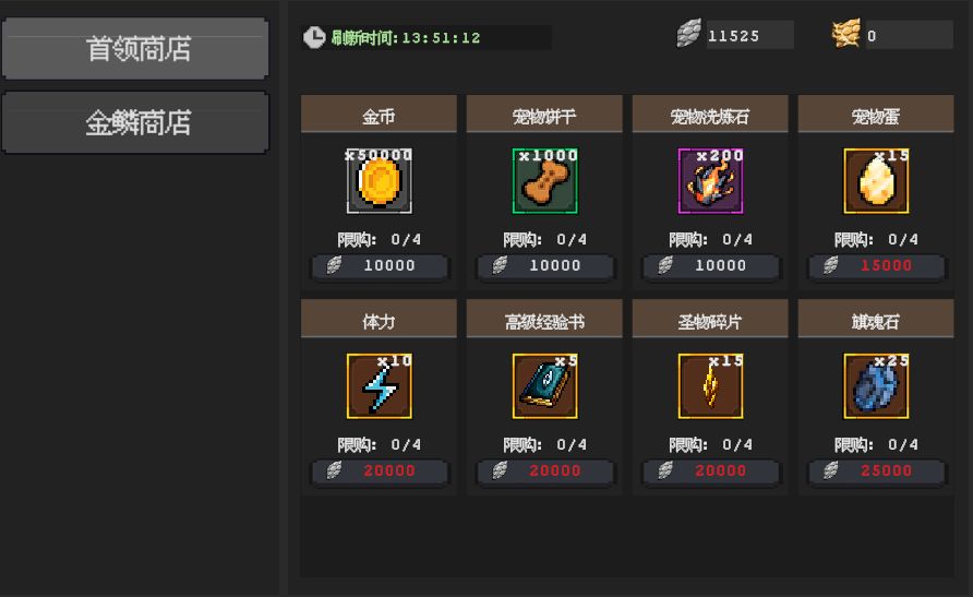 a.商店共2种:BOSS商店、龙鳞商店
