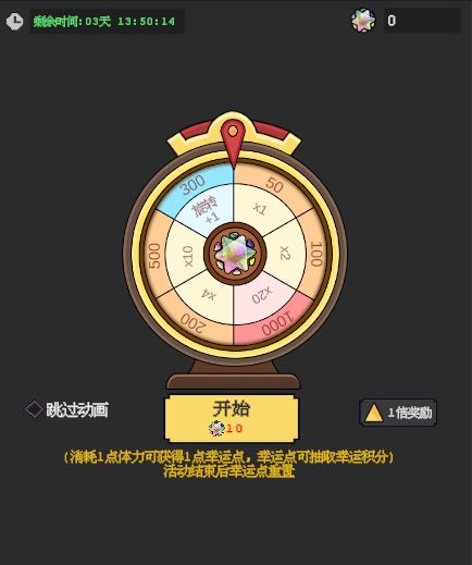 d.活动期间每周一重置,幸运点和幸运积分清空