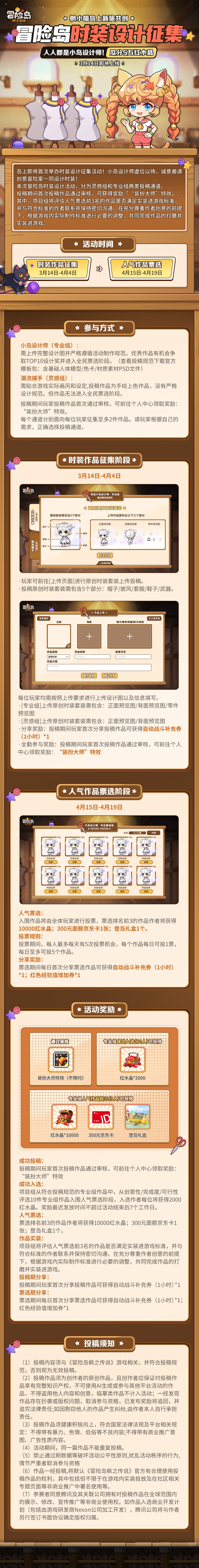 本次冒险岛时装设计活动,分为灵感组和专业组两类投稿通道。