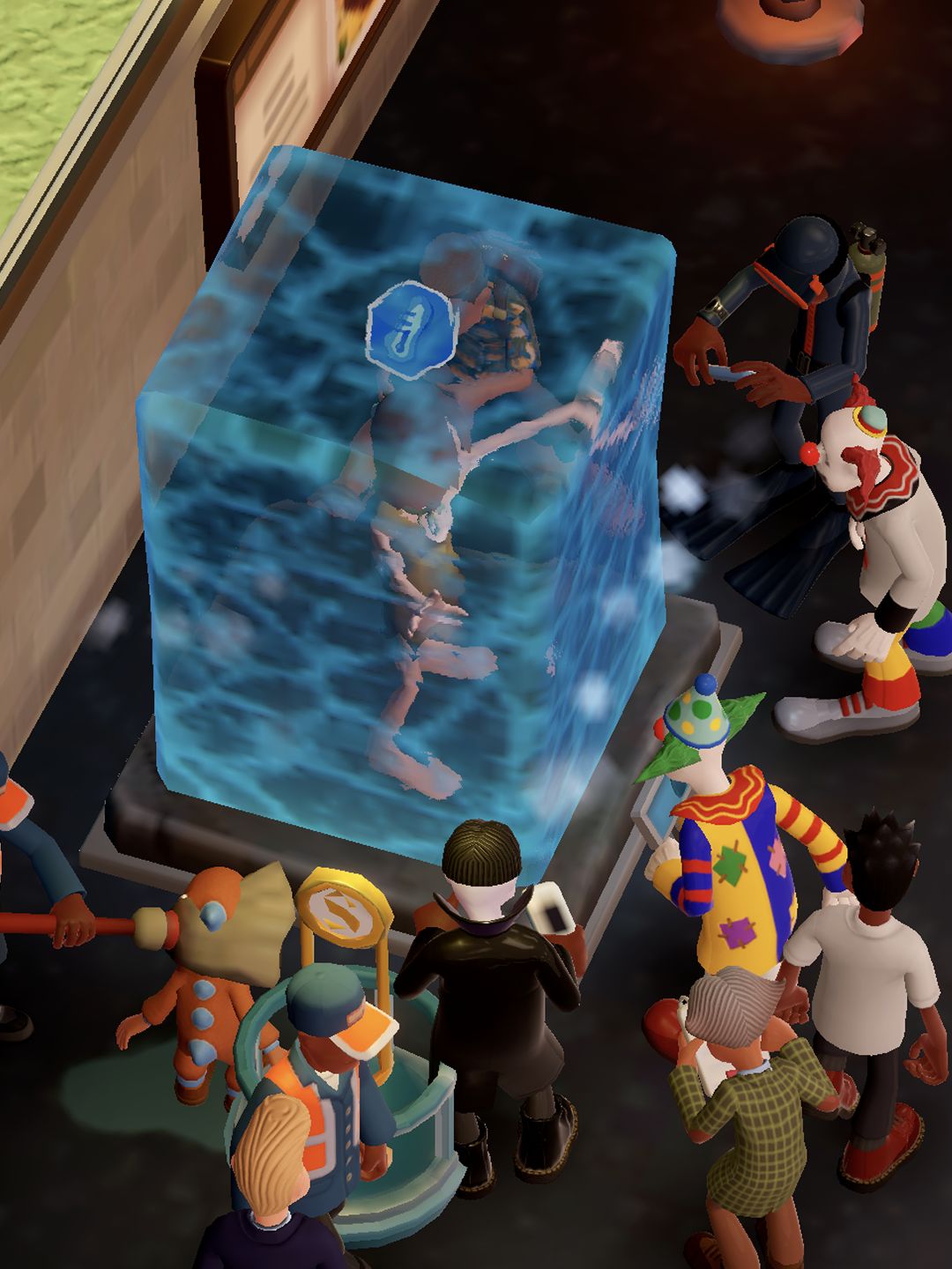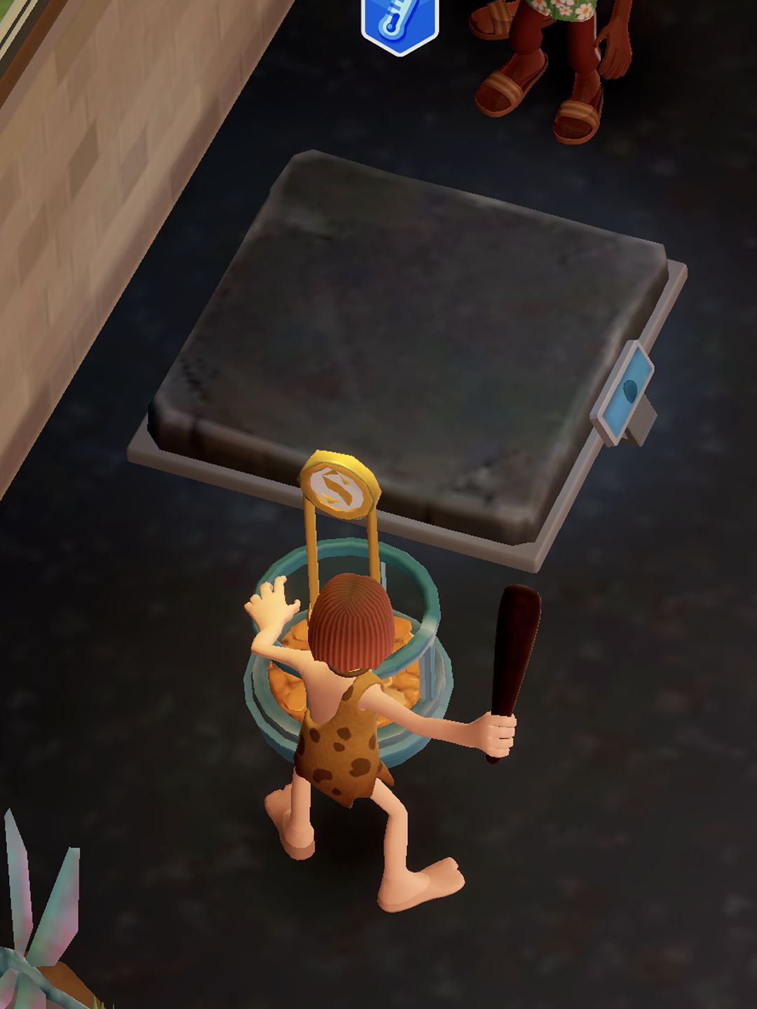 中午试着把冰封穴居人这个展品放到温室里,🧊就一点一点的融化啦~ 最后,砸坏的捐款箱被勤杂工修好了,等警卫逮捕了流窜的穴居人这个成就就算拿到啦!