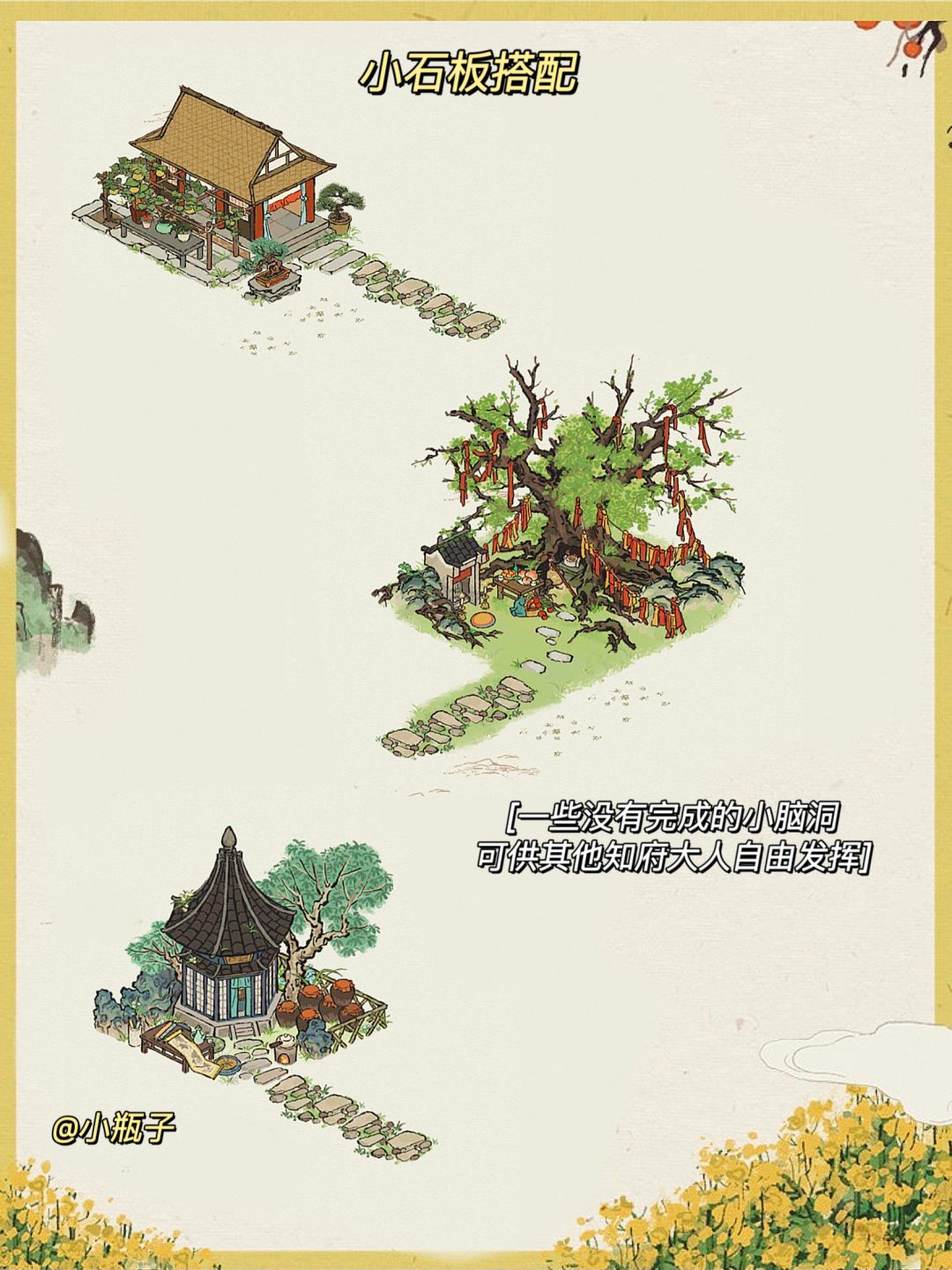 小石板真的太太好用啦 好多自带路的建筑都可以搭配 乡间小屋的那个记得也看过别人搭配 但是不记得了 如果有原创请评论