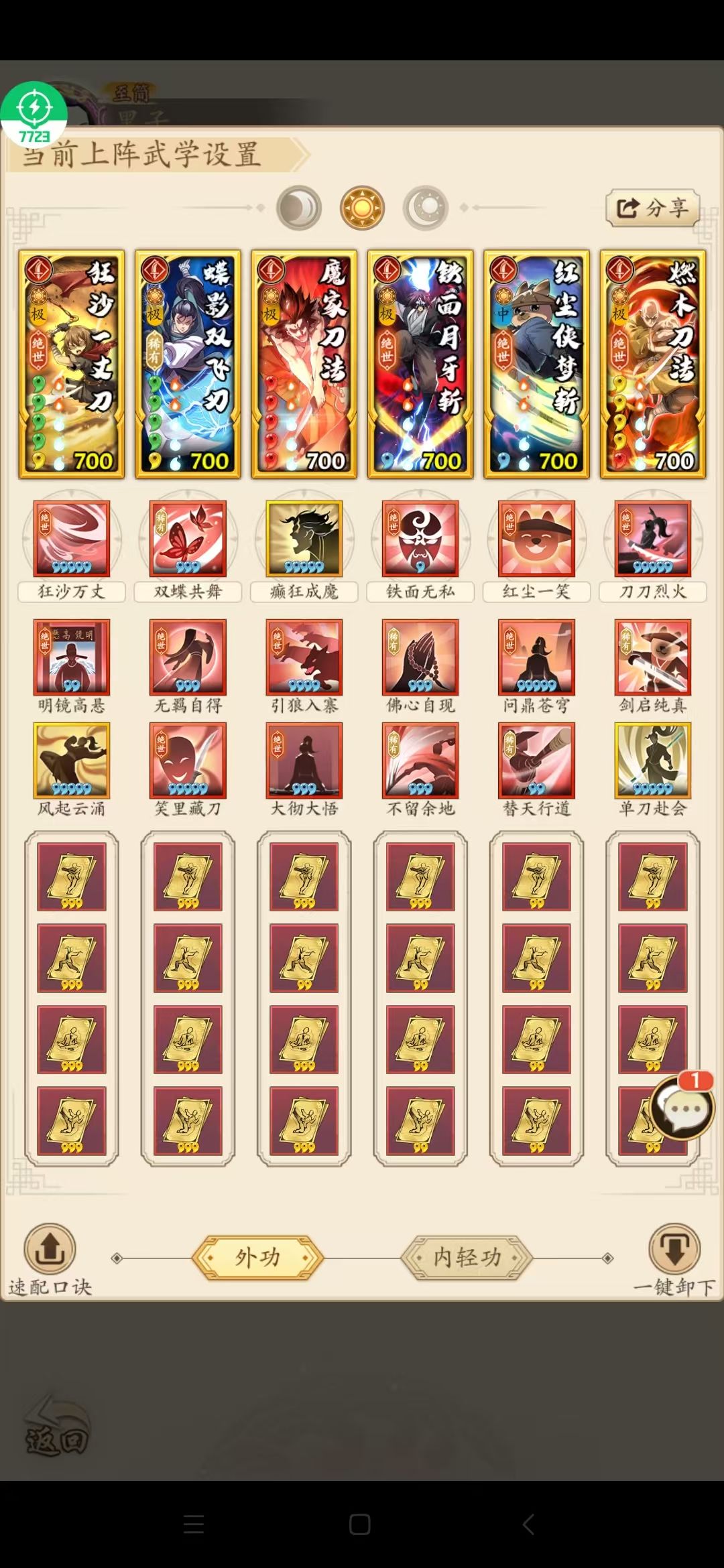 分享一套半娱乐的 护盾刀,缺点也明显,绝世勾会比较低,而且打吸内 和阴拳效果不是很好,其他方面还不错,具体要看个人减伤在多少。 (最重要一点,现在不建议拉铁面 和红尘,具体等武学调整看看情况,可以先用着娱乐!!!!后续看情况在选择)