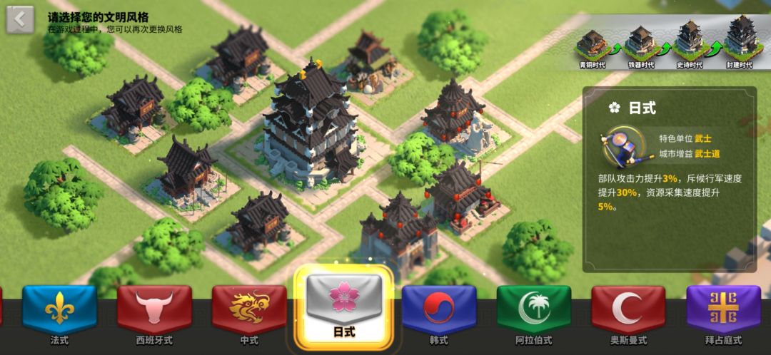 第一。如果你是平民玩家,0到1000的那种不愿意花很多钱在游戏上的有家建议选日本。(这个10几级的时候也可以换),多数人建议我们选中国建造速度加百分之5,但其实在我来说没有我们更长的时间我们都会用在采集上。而建造中间我们会多出很多的加速无处用。
