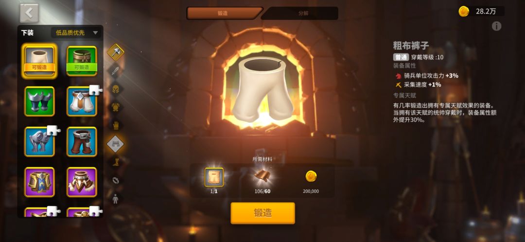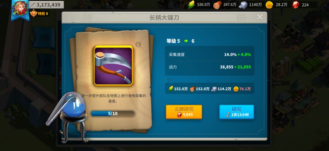 第9。尽可能的尽快有限制金币就做装备,装备选择可以收获者全套。装备也尽量给我推荐的第一批次的玛蒂尔达一世和柯斯坦察。他们两个的采集效率越高额外的资源就越多。