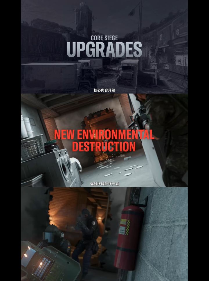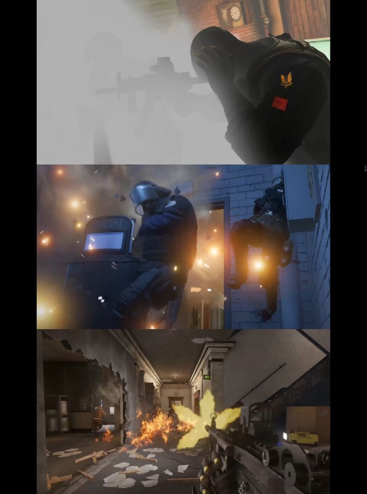 ③彩虹六号将进行引擎升级,从底层重塑游戏表现,本次升级包括更多的场景可破坏,更多的场景交互,场景里会有一些道具可以“使用”,比如灭火器可以被打爆,水龙头可以出水、燃气管道会被点燃(图3)。