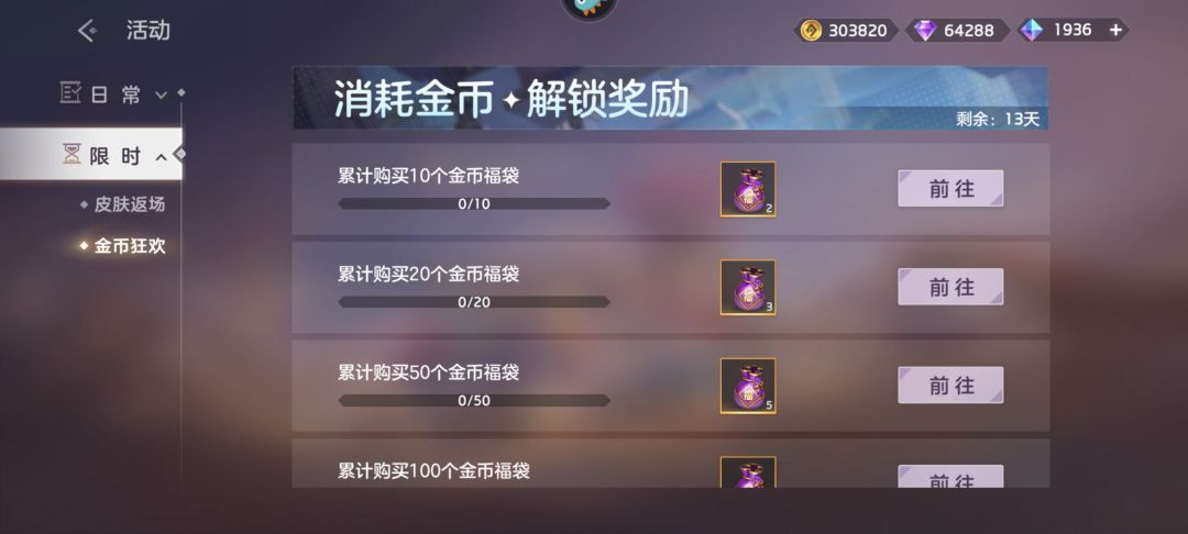 这第三号今天才回归的有时间限制的活动全部没有,难怪别人不想回归呢,退游了一段时间回归,假设有刚好白嫖新皮肤活动,结果一上线没看到,又退游。