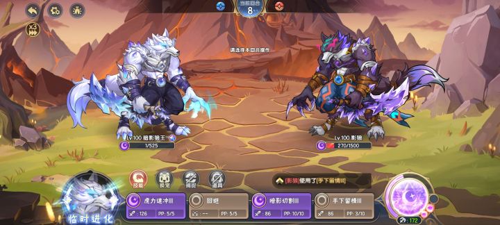 呃,这里面观察后,对面的狼会一直用你观察的技能,只需要一直手下留情,最后补个3级大招就行了