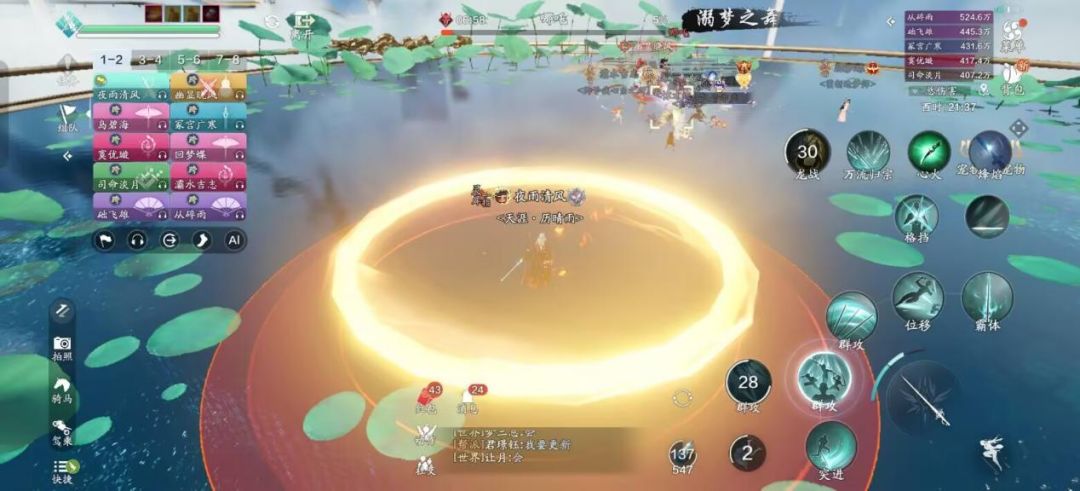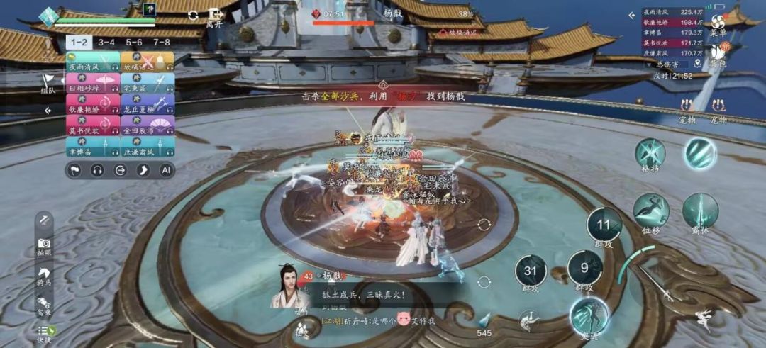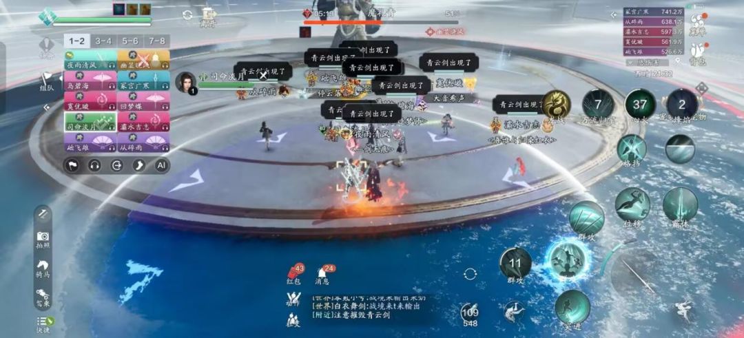 开场建议直接开启增益技能,团队成员在首领脚下抱团输出,这样即便被 “八风之力” 吹到,也不容易撞到 “暴风墙”。