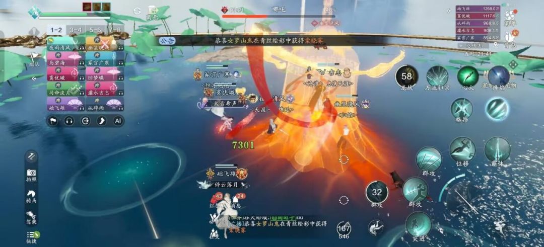 当哪吒血量降至 15% 左右时,前面的多种法宝技能会同时出现,这个时候比较考验团队的配合能力和走位能力。不过15的血量只要大家集中火力很快就能清空,即使有人倒地也不用慌,影响不大。