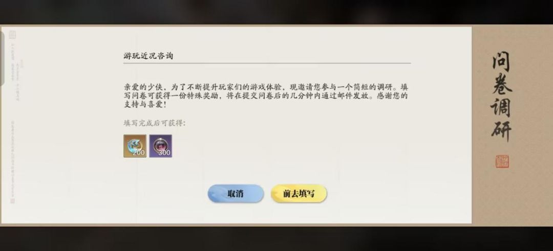 下载奖励:下载完整客户端,包含各种外观资源、场景资源等,可获得 500 月灵石。问卷调研奖励:参与官方问卷调查可获得一定数量的月灵石,如 200 月灵石。