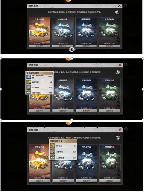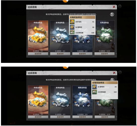 2.占领伊甸后,总统可发放伊甸礼包,四个档次,合计18个。