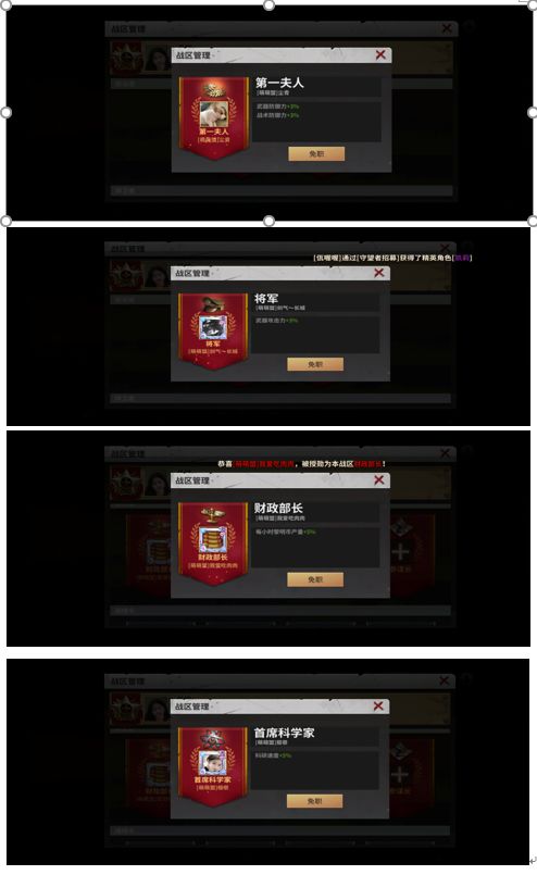 4.占领伊甸后,总统可任命官职,官职图标会在堡垒上方显示,6个正属性收益,8个负面收益。其中科学家官职性价比最高增加5%科研速度,财政部长与国防部长次之,其余为战斗属性官职。免职后,12小时后才可以再次任命。