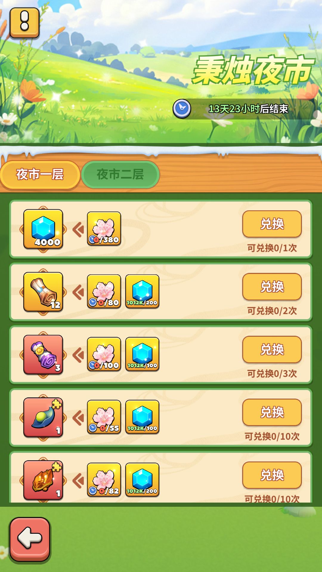 活动期间,在花路同游以及其他途径获得的灼灼桃花,可在夜市兑换奖励。根据每一项奖励的要求,凑齐对应的道具,即可兑换奖励。每种奖励的兑换次数限制不同,请合理规划道具消耗哦~