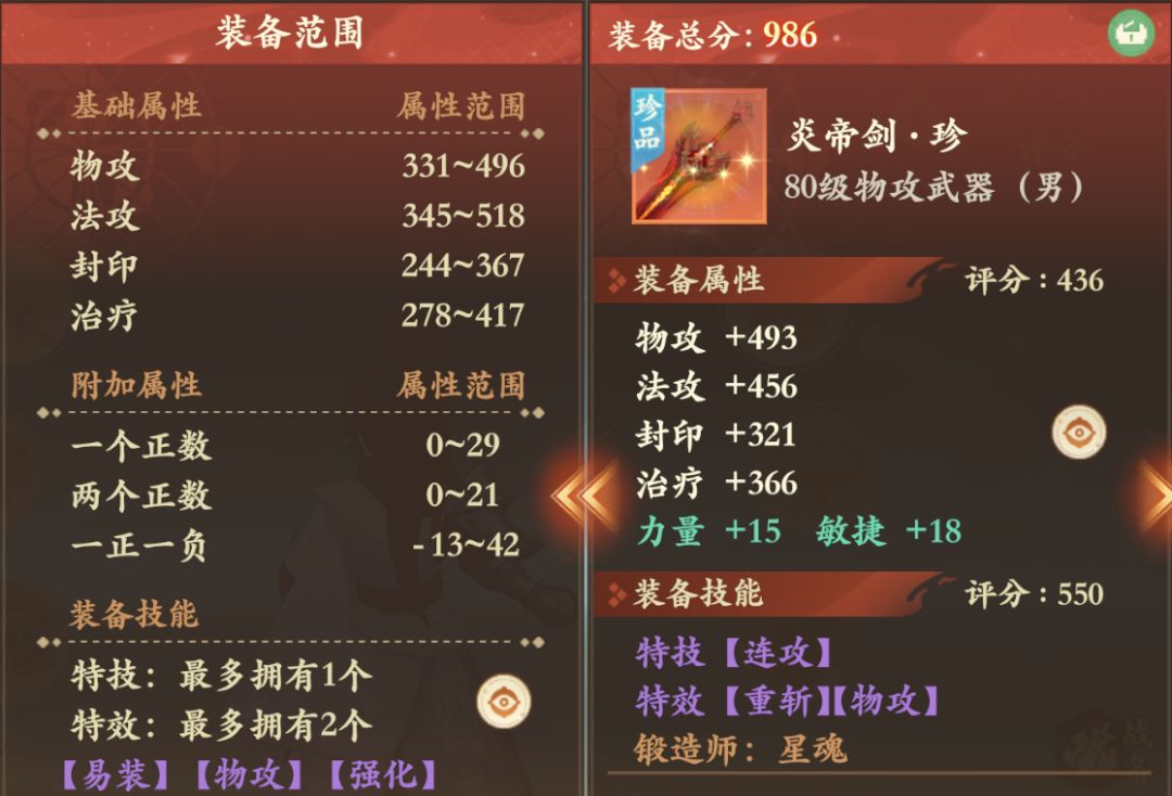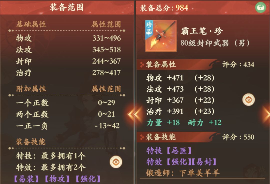 雷震子点评:80级毕业物攻物理武器。物攻仅差3点达到满属性非常稀有,重斩+物攻伤害爆炸,搭配物理必备特技连击,到手就开劈!当然如果追求极致力量绿属性需要搭配加减,但回到现实这装备已经很完美。