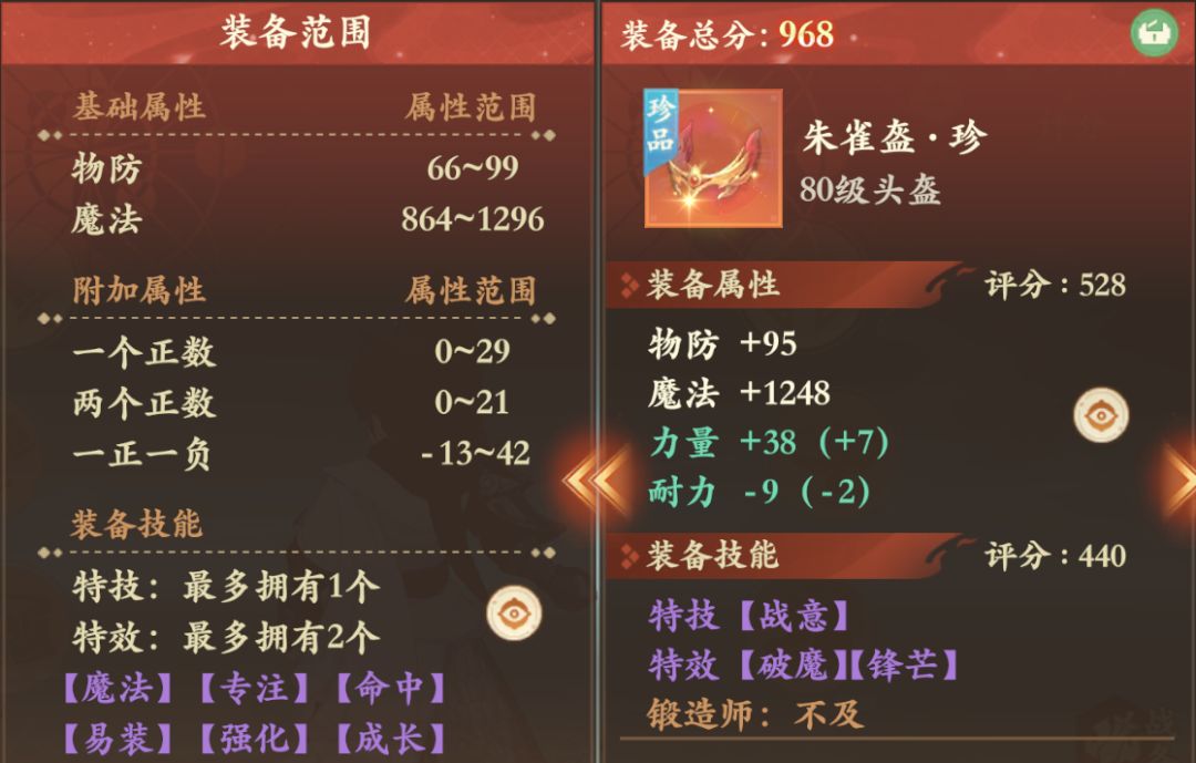 雷震子点评:非常哇塞的极致正负法师头盔。可以说是完美的法师毕业头,接近满基础属性+高额正负非常非常难得!同时搭配锋芒特效,极限放大了正负加点的优势,三特搭配破魔和特技,追求极致面板的同时也是实战利器。极其稀有的法师毕业头盔!