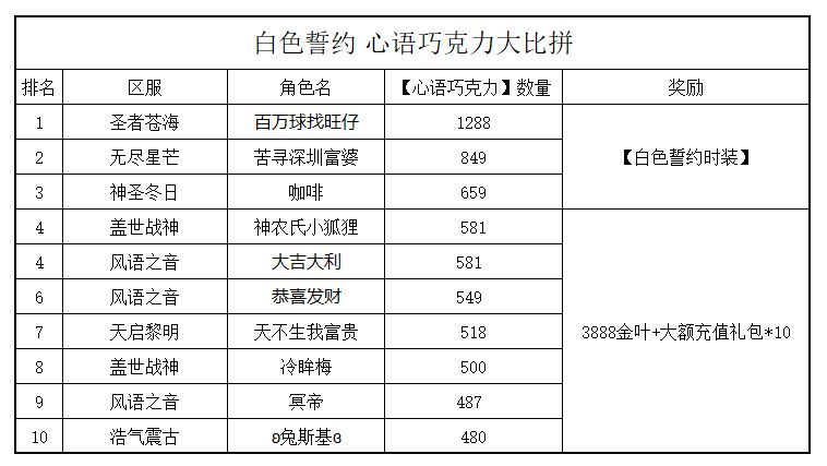 恭喜以下获奖玩家,奖励将于7个工作日内发放,如有疑问请及时联系客服~玩家可自行将相关道具进行清理。