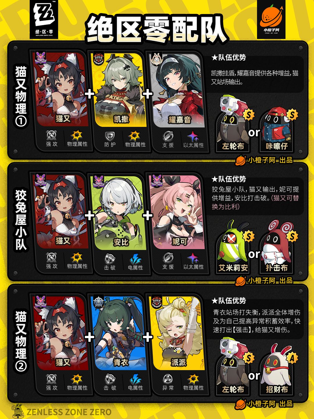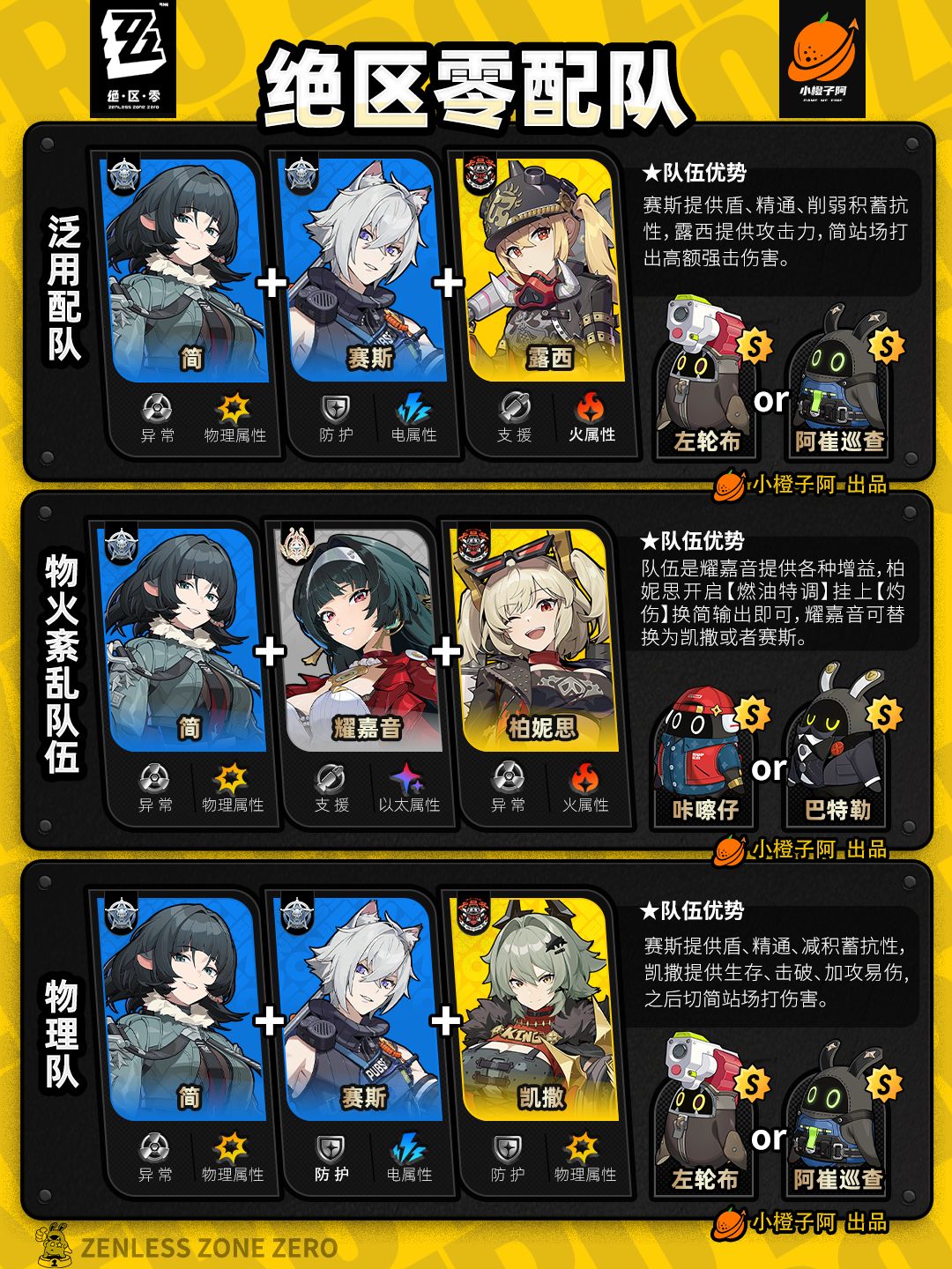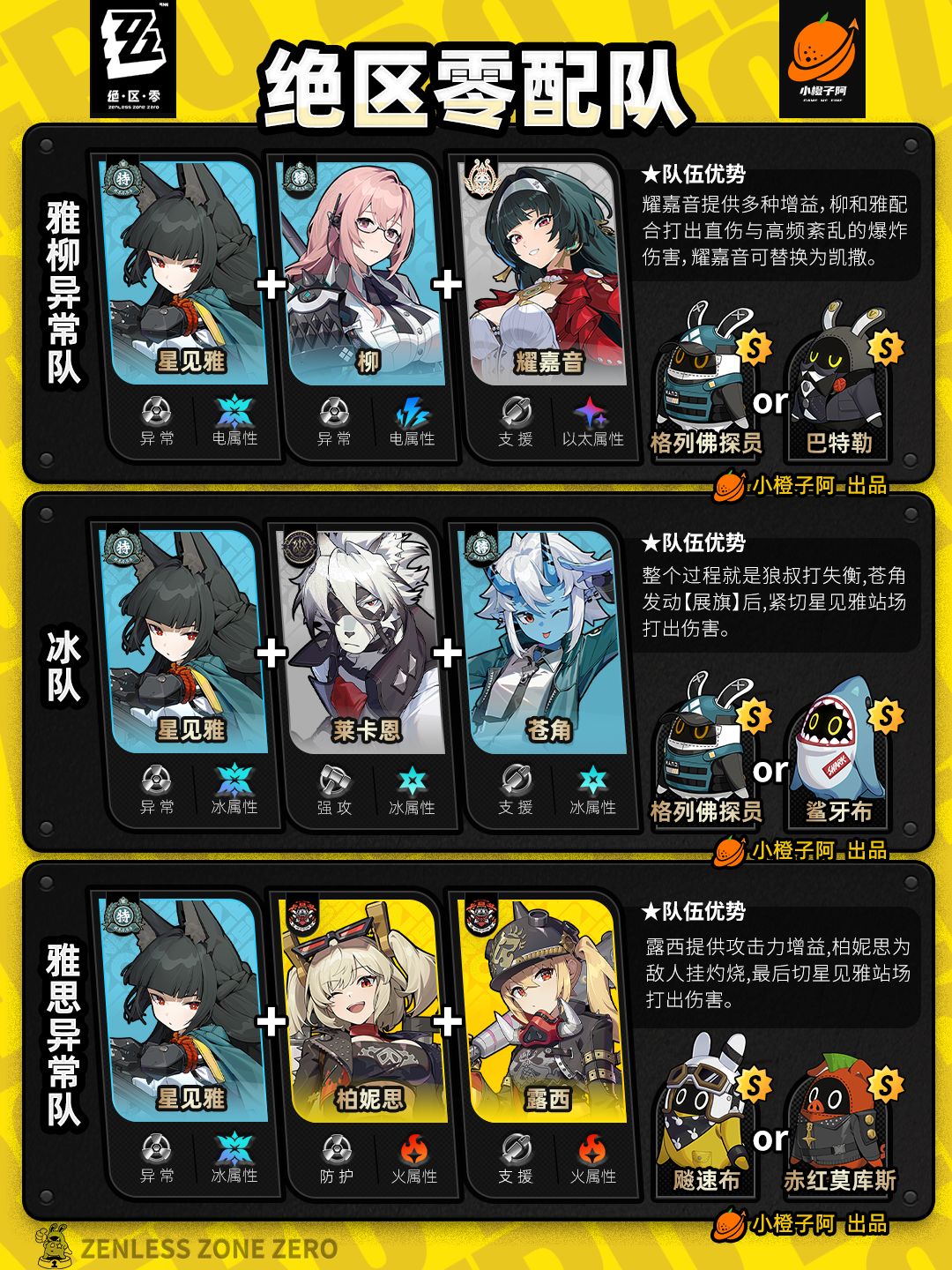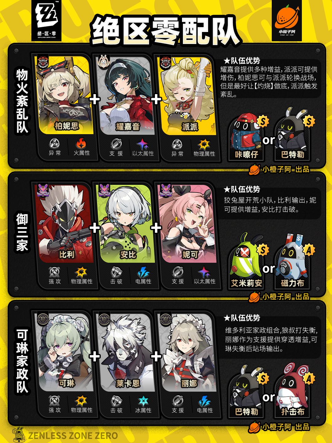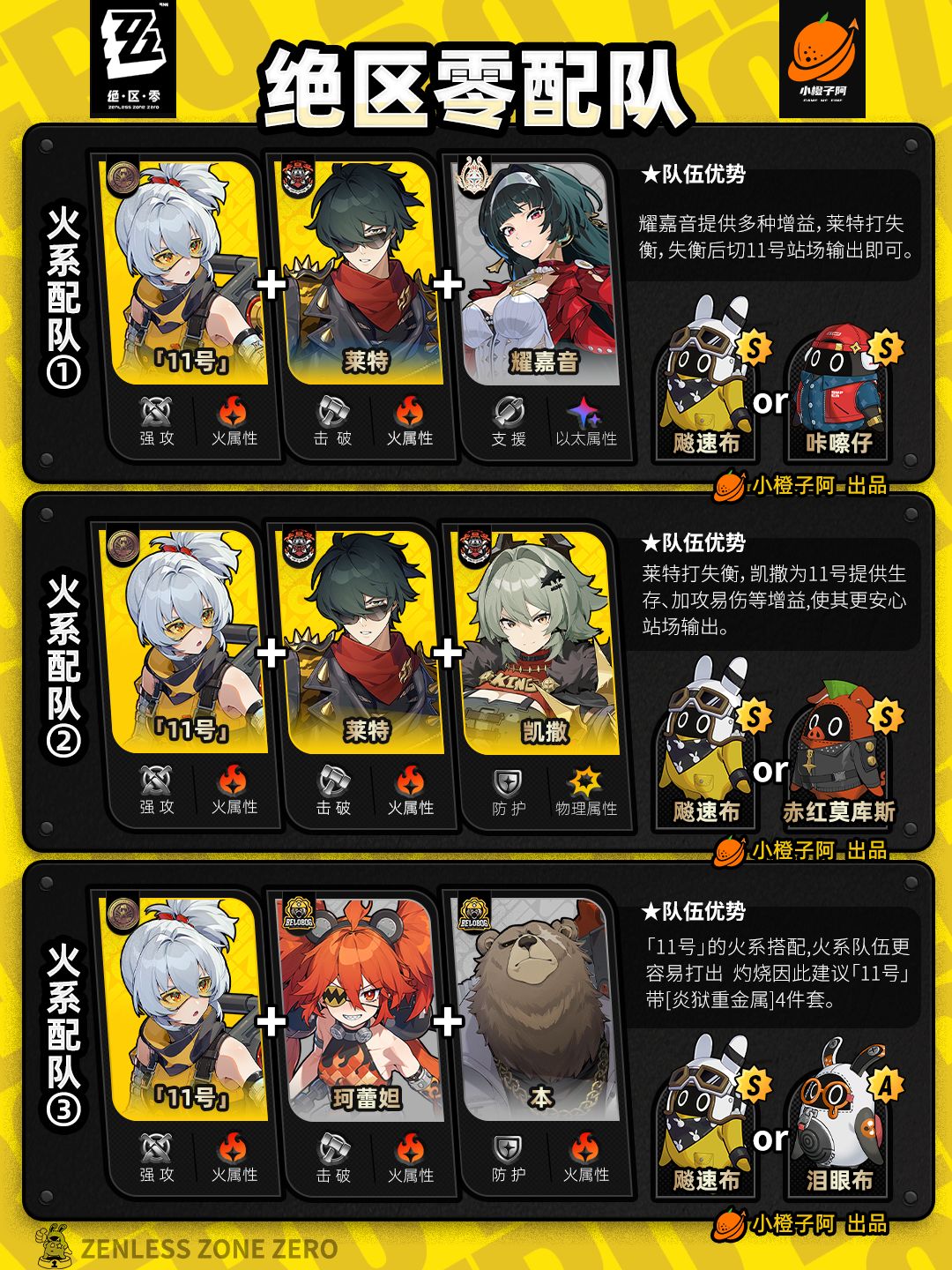 这一期是全角色的配队情况,橙子加入了