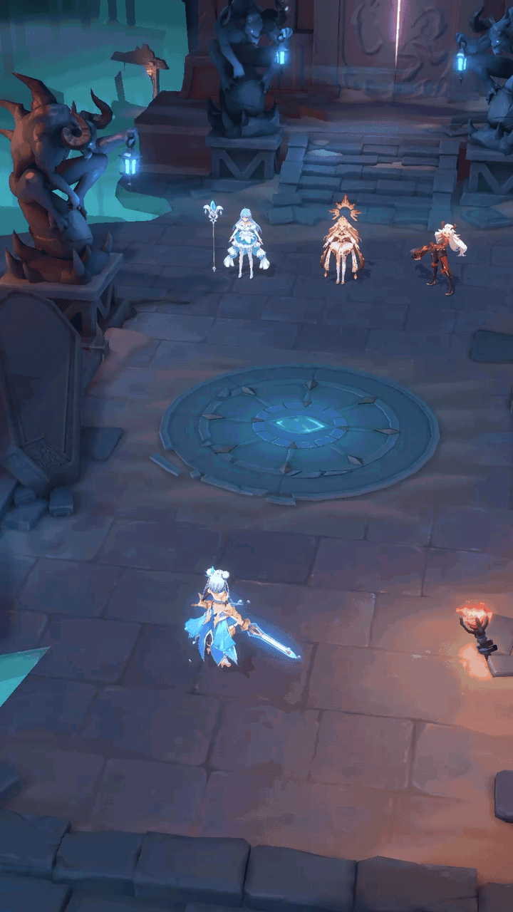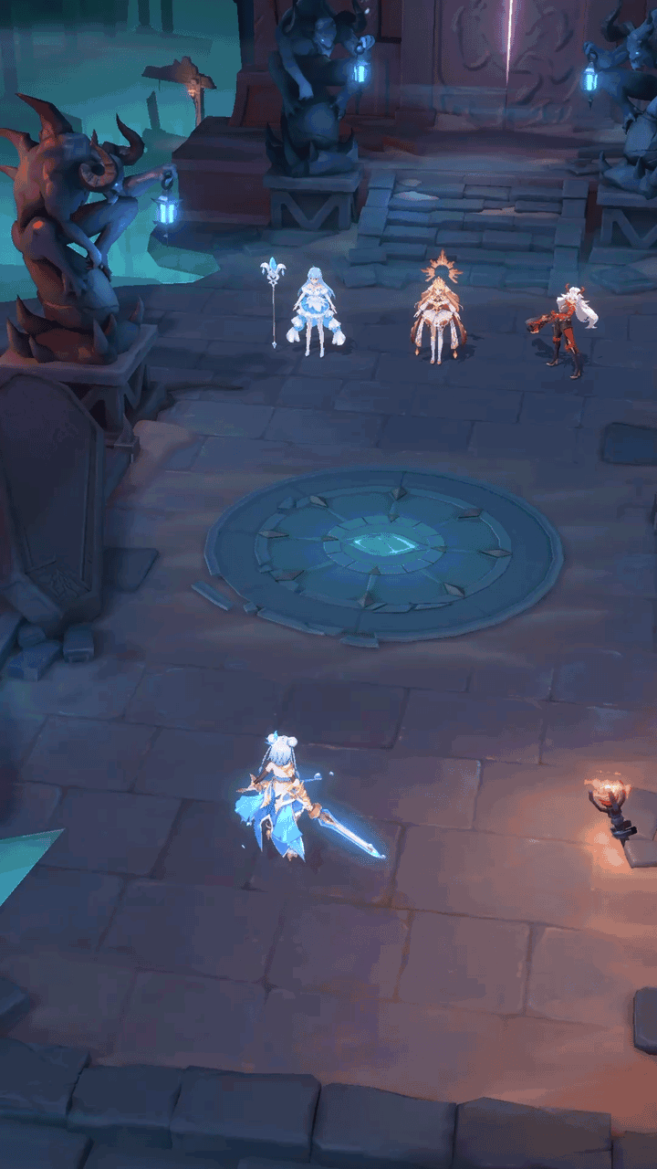 >坚冰褪下铅华,以剑之名化作阿库娅的利刃,阿库娅获得【剑】印记,然后对敌方后排2个单位造成攻击180%的伤害,30%概率冰冻目标,并将伤害的40%转化为深海护盾 2回合。