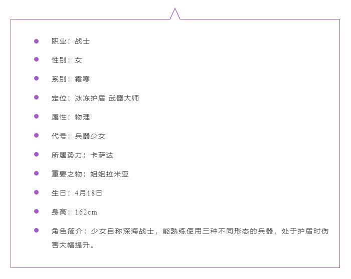作为寒霜系守护者,阿库娅既是神盾使的核心,也是冰冷血脉的核心。双羁绊加持让阿库娅有着更高的上限,绝对是霜寒系守护者中当之无愧的首选!