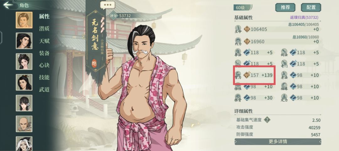(外功?+内功?)×固定系数5×(1+0.006×臂力?)×(1+基础