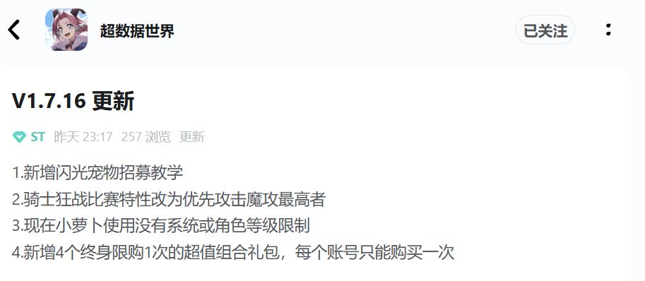 由于V1.7.16 版本最大的更新是优化了新手的氪金体验,非氪金内容不再赘述,参照大佬的帖子: