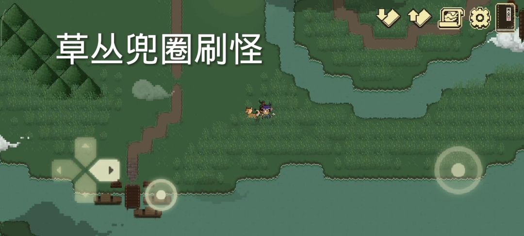 右上角图标分别为:保存存档、读取存档、查看地图、设置(传闻宝典和图鉴)