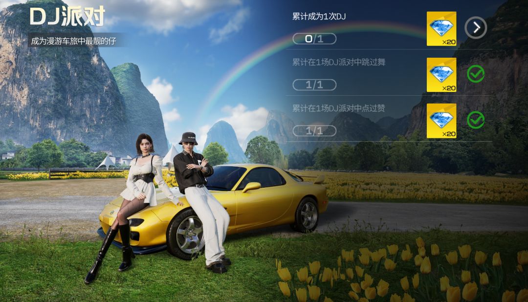 除此以外,车手们还可以通过点赞、跳舞等互动行为,提升热力值抢麦哦~与其他车手共同参与,登上巅峰DJ台打歌,放你最爱的歌单,让全场都跟着你的节奏摇摆!并且完成互动目标后,还有机会获得特殊的荣誉标签哦!