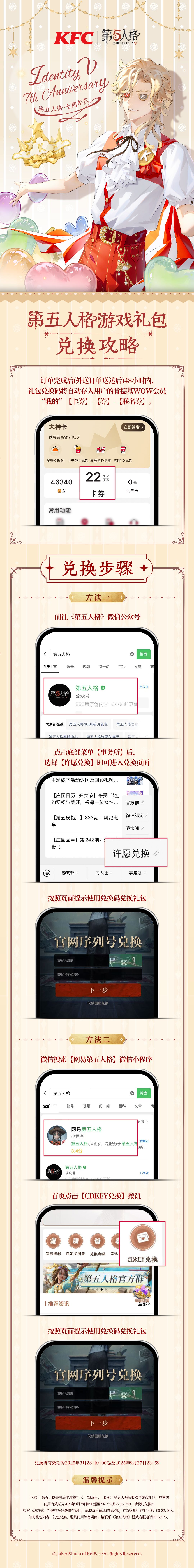 第五人格×肯德基 联动第三弹,美味庆生活动即将开启!