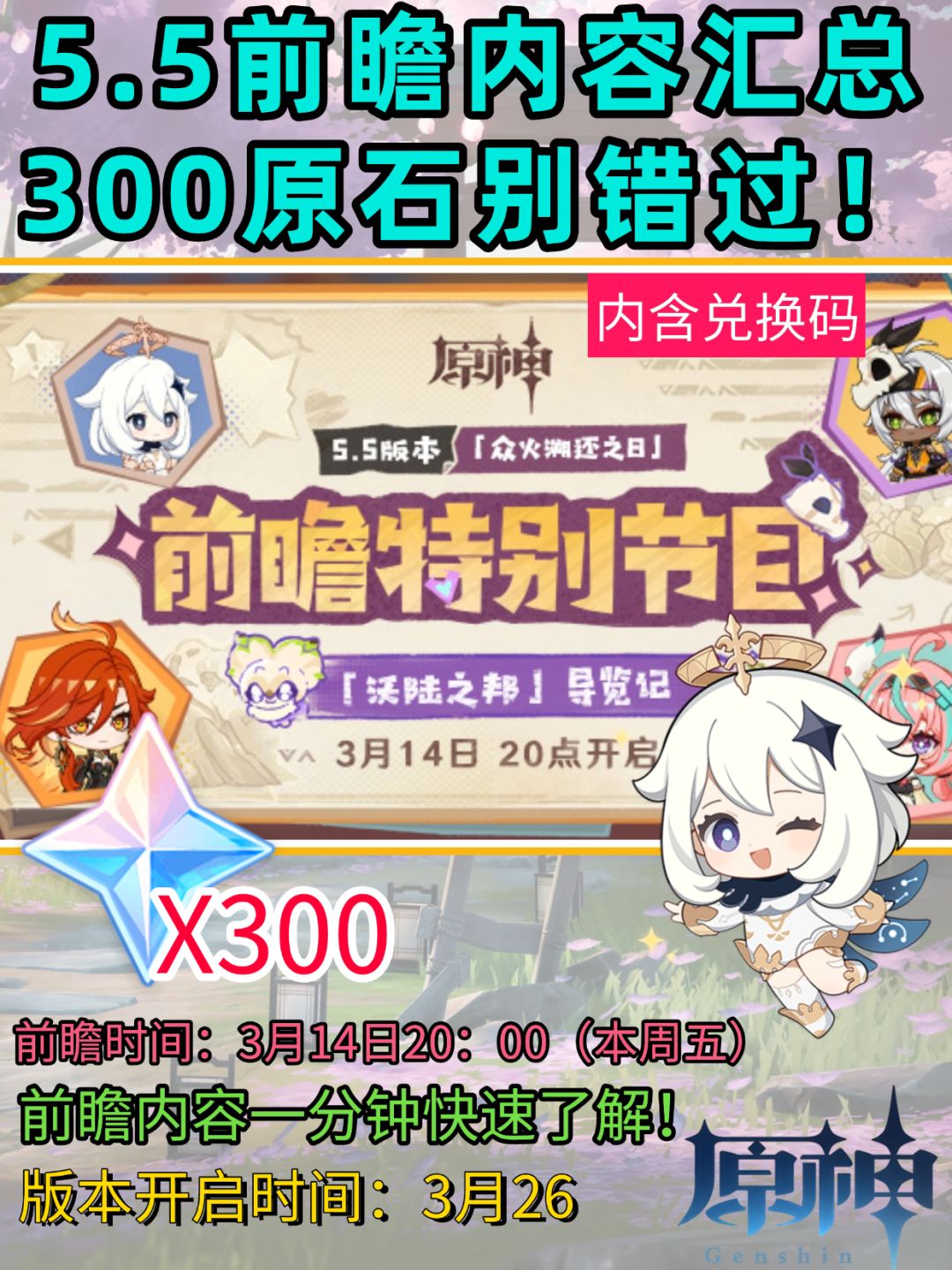【V5.4攻略】5.5版本前瞻内容汇总+兑换码