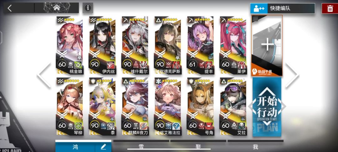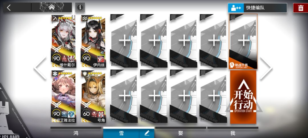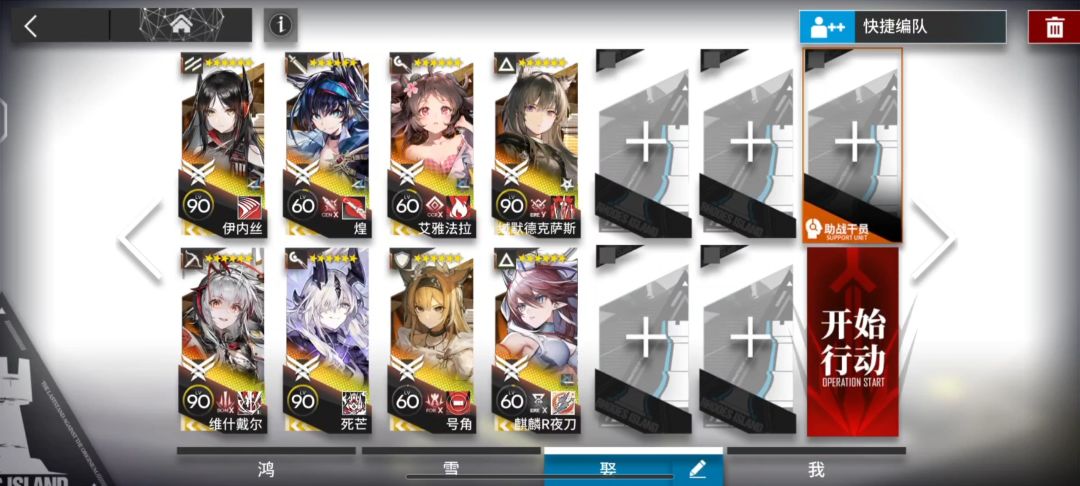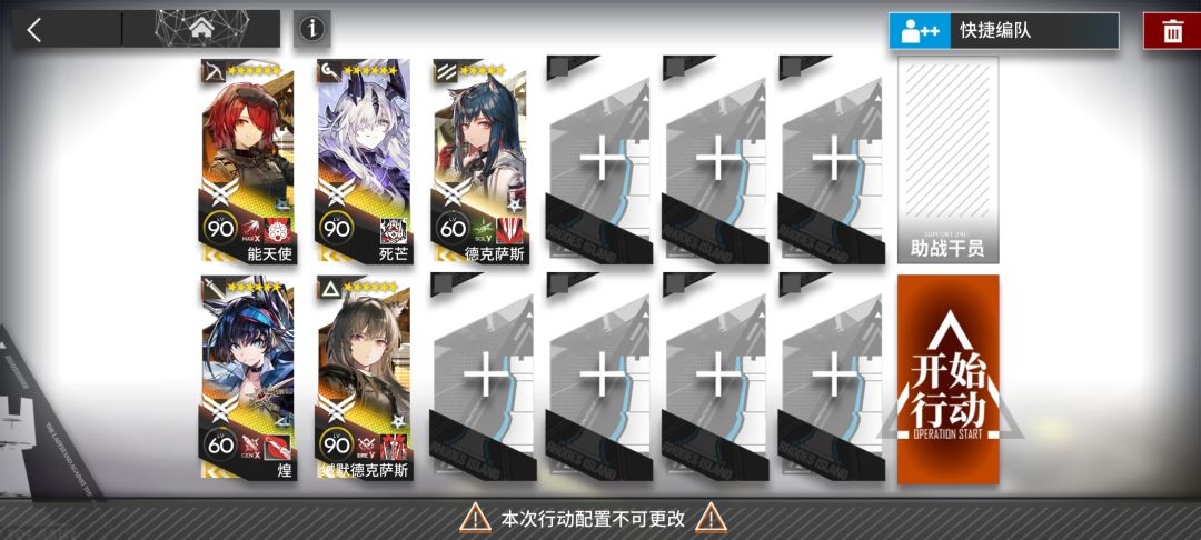 本关为五人作战,难度并不大,香蕉姐左侧也可换成任意重装干员,也可多带几个输出。