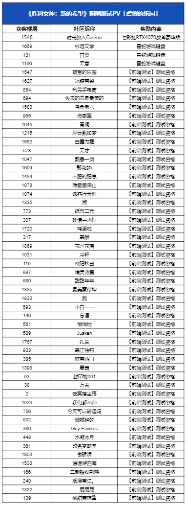 5.实体奖励将在领奖截止后最多30个工作日内发货。关于社群领取的测试资格发放详情,请参考招募说明。