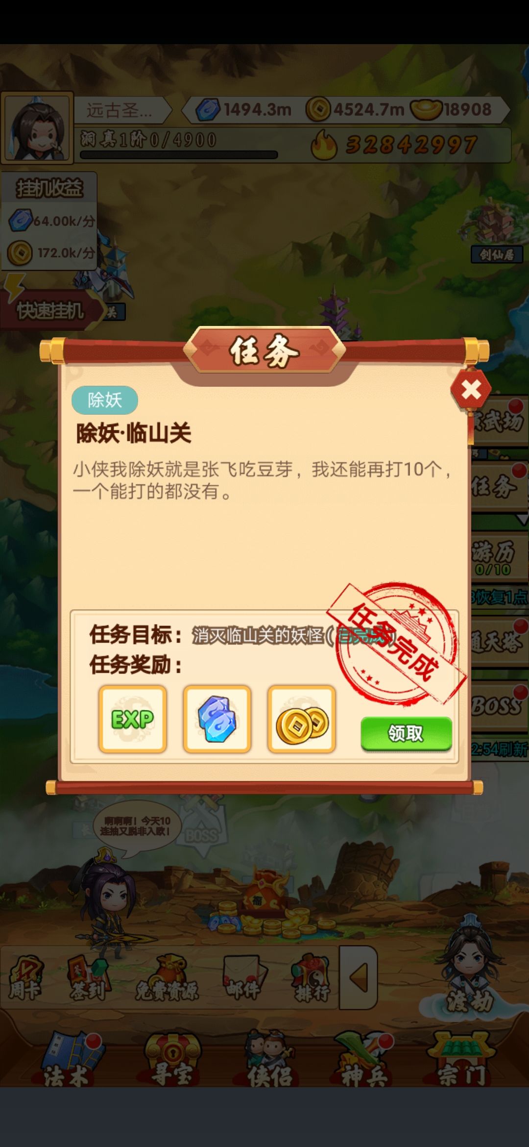 第二、有除妖的任务,做完之后不给经验。众所周知这游戏最重要的就是经验关乎个人实力进度。