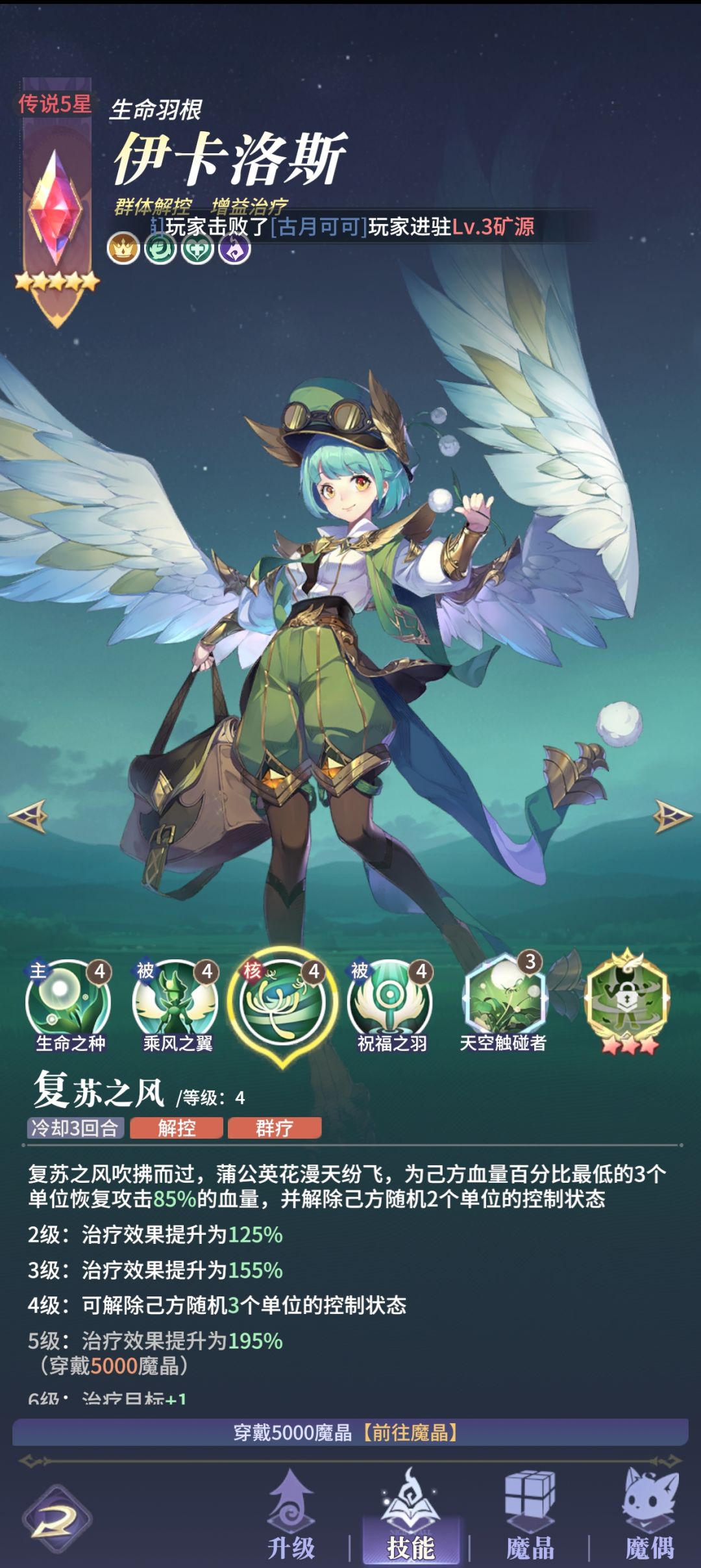 解析:伊卡洛斯是一张很好用的基础卡,三技能稳定解控三个队友,且成长能力中有一条:释放三技能前会自我解控,保证二回合只要活着就百分百全员解控,十分好用,卡也非常容易获取。适合在对冰队时使用