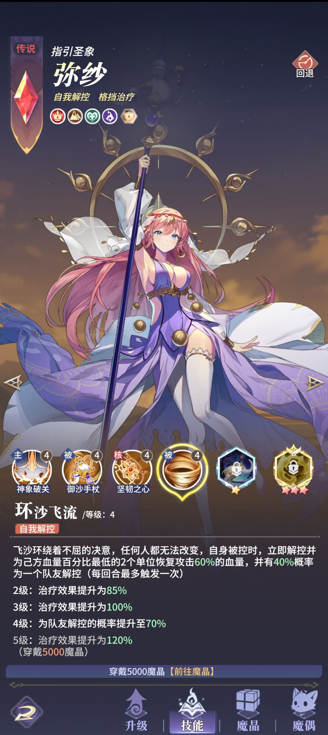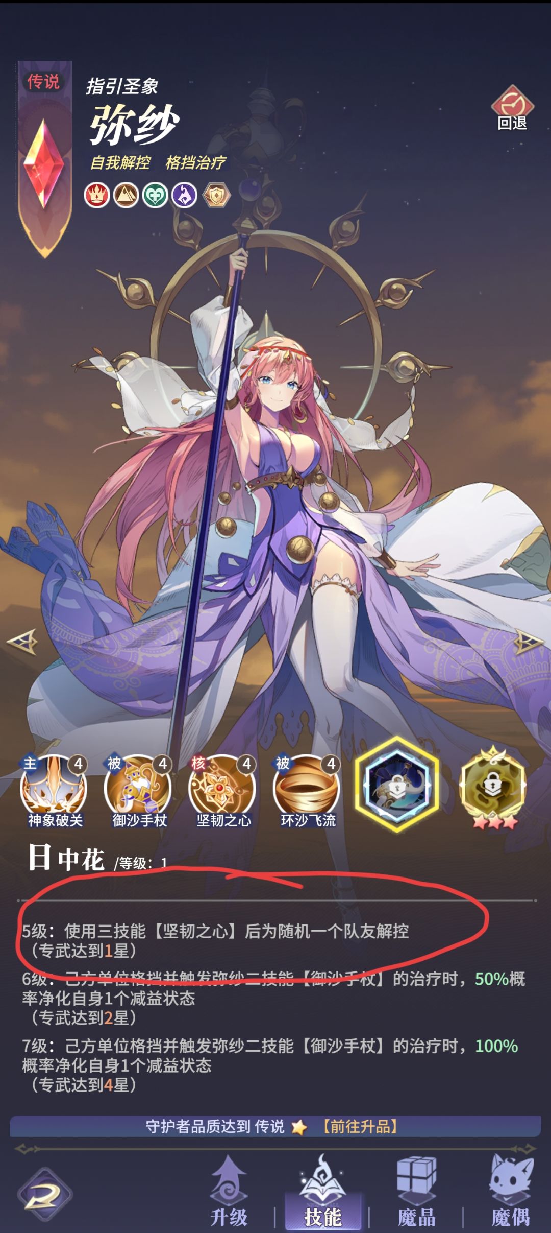 妳莎自己解控,且自己解控的同时会给队友100%解控(细看成长介绍,70%+30%),但是唯一的问题是,如果妳莎自己不被控,那么她是不会给队友解控的(很迷),所以就需要妳莎专武一星,在二回合开始时,稳定给队友解控,妳莎是一张很好用的卡,各个队伍都需要备一张,后续详细展开讲解