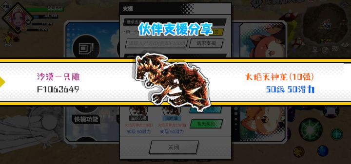 如果遇到困难,可以召唤我的宠物帮忙,召唤方法是进入地图后点击左下角的手机功能>支援>输入【F1063649】>就可以召唤我的宠物!