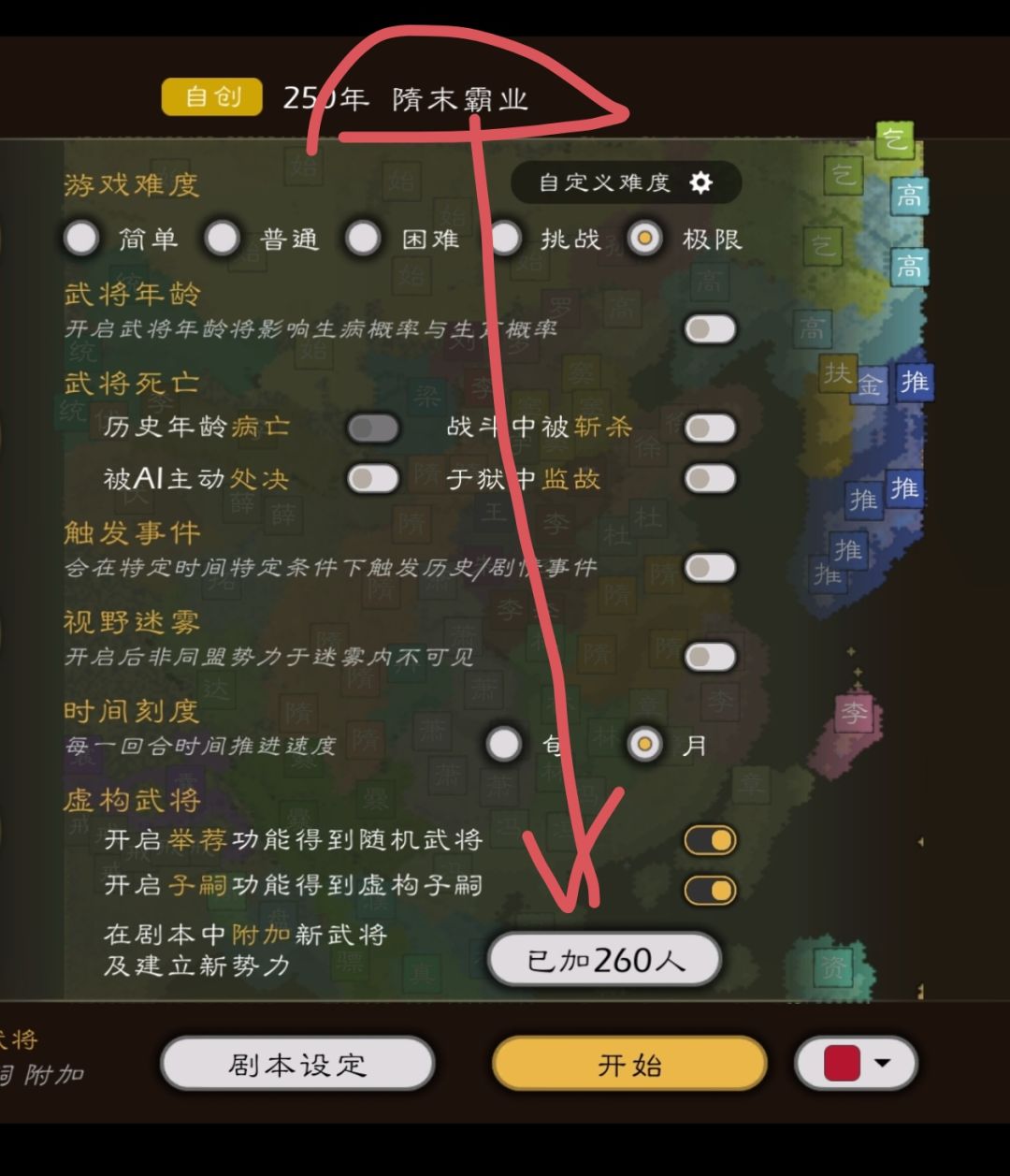 3、重点隋末霸业主打史实(260个隋朝自建武将+子嗣和举荐),专为追求史实的玩家。