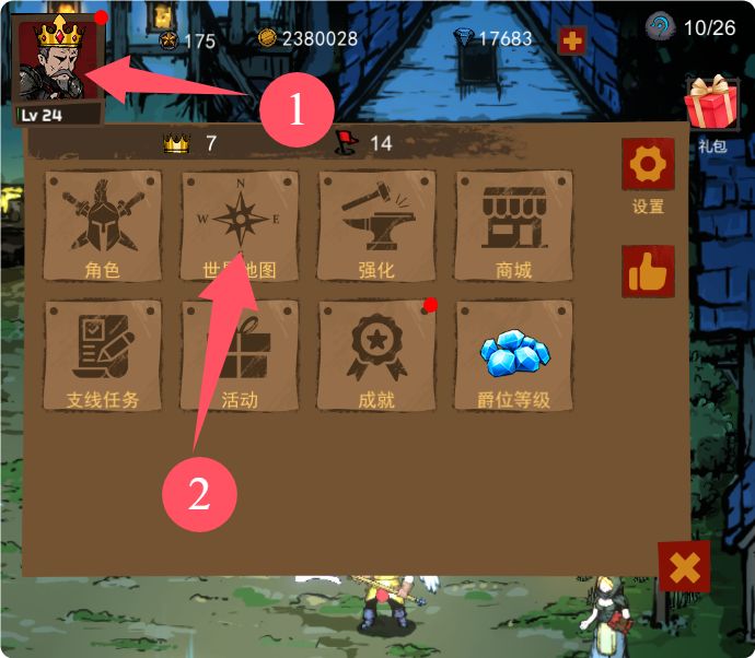 注意:地图系统需要在完成第一章第七关后解锁。