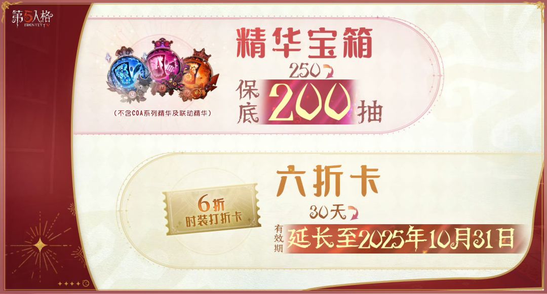 第五人格前瞻一览,精华保底调整为200抽‼️
