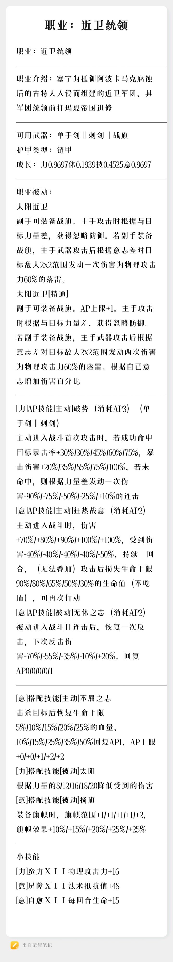 职业:近卫统领