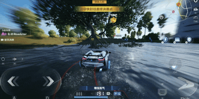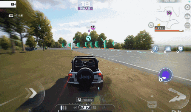 根据小地图的指引,先火力全开朝着紫色图标的起始点冲刺。抵达起始点只是第一步,紧接着就得顺着导航,风驰电掣般朝着终点狂飙。