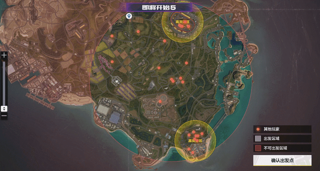嘿,好戏正式开场!地图上那两个超显眼的金黄色光圈,就是 “宝藏多多” 的高资源区,各路大神都有可能在此集结。