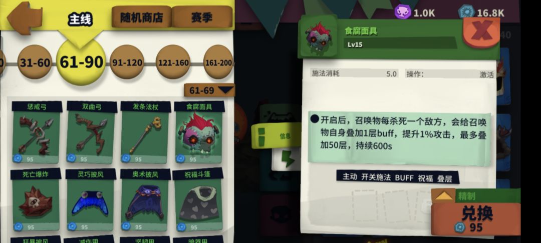 用了食腐头盔,如果不是召唤生物死的太多,尽量不要重新召唤,因为新召唤出来的召唤生物会顶掉原先有buff的召唤生物,需要重新叠buff,这个头盔的buff可以提升很多伤害。