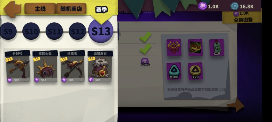 右上角兑换图鉴里选择S13,找到追猎者,兑换