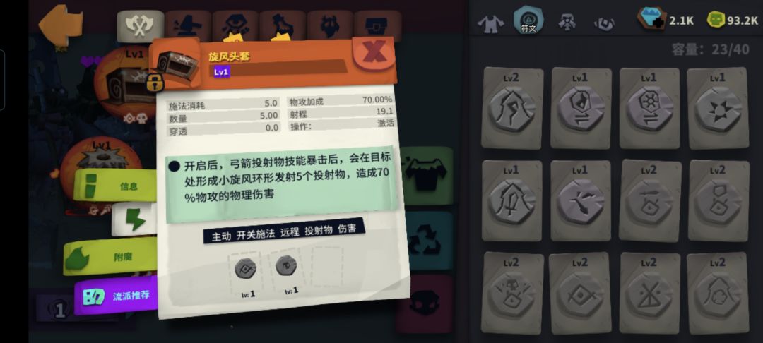 狩猎标记:提升清图效率,有人说这个爆炸降低了攒头上箭的效率,个人认为,伤害本身已经够了,就算头上一根箭,也可以一下清一波小怪,比头上一堆箭在怪堆里乱窜更流畅一点,而你见boss的时候,带这个升华也可以在头上攒了一大半箭了,当然,旋风头盔清怪很快,我个人用旋风头盔,触发的时候总要卡顿,因为旋风头盔的投射物太多了,容易卡,这个天赋唯一的缺点是,特效太费眼