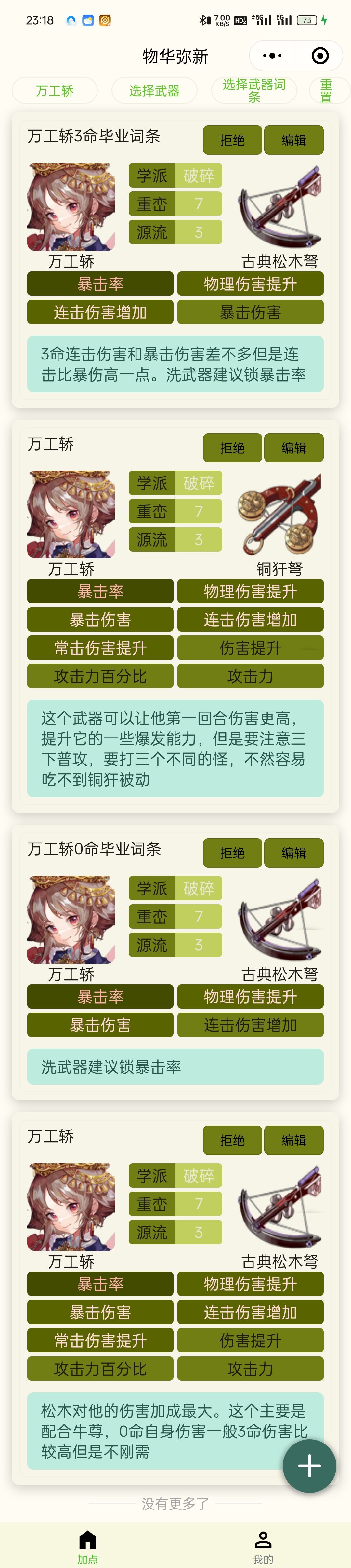 可以搜每个角色的词条并且每个角色有比较多的武器词条推荐,也特意的给每个角色弄了毕业词条推荐方便大家观看